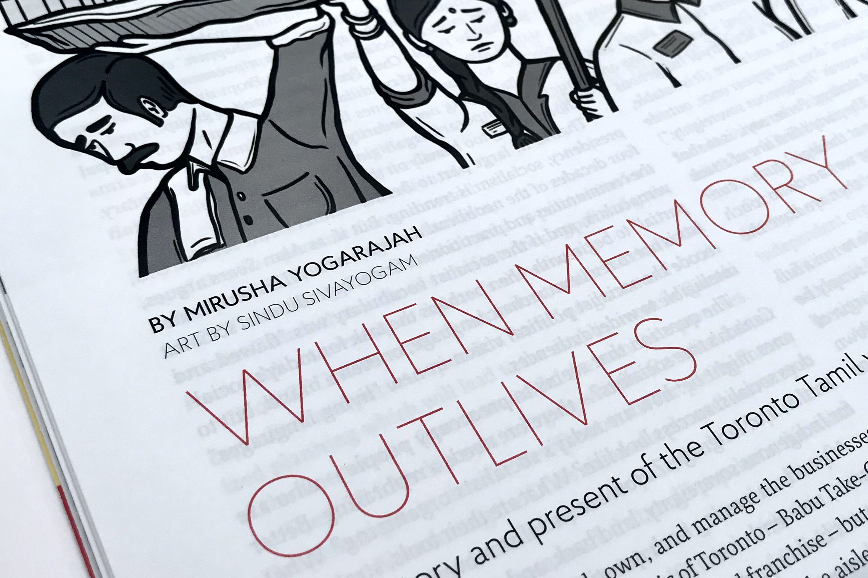 For the ‘Great Manitoba’ May/June 2020 issue, I worked with the editor to develop the accompanying illustration to Mirusha Yogarajah’s “When Memory Outlives.”